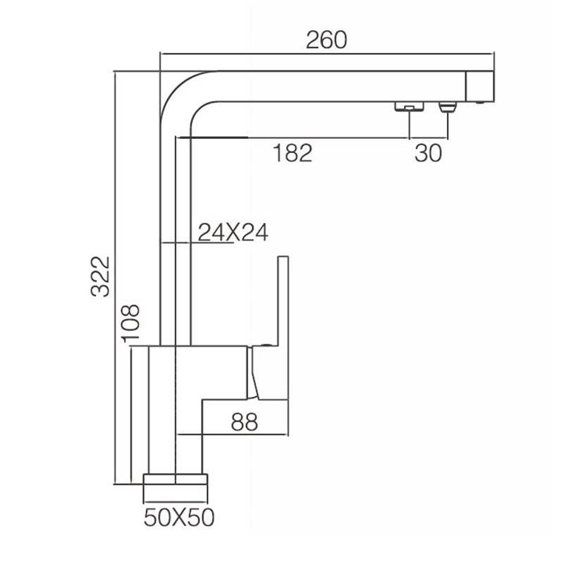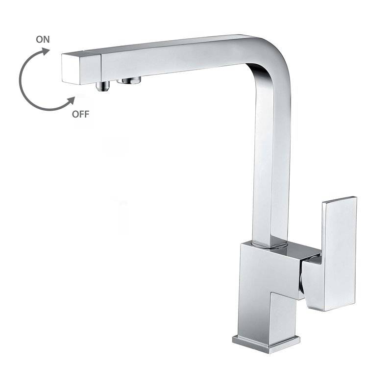 Grifo fregadero de 2 vías con osmosis. Medidas: 32,2 cm de alto x 26 cm de largo.